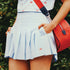 クラシックなデザインが特徴で、トレフォイルパッチをあしらったプリーツスカート。インナーパンツ一体型。